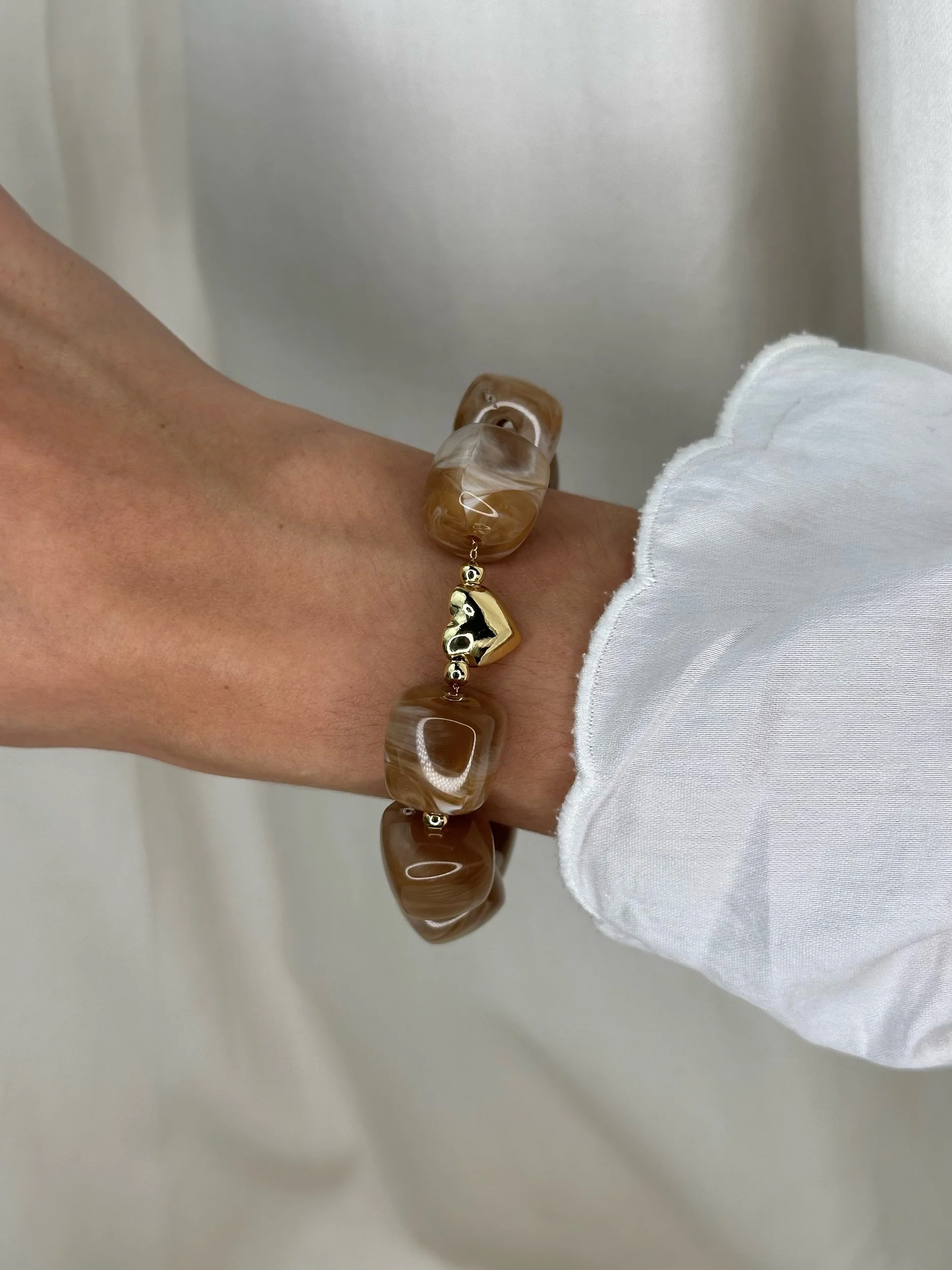 Bracelet en résine, petites perles et fermoir bouée en plaqué or 18 carats et 3 microns